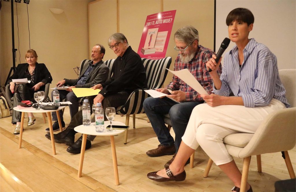 Trpimir Jurkić i Ivica Mijačika tijekom predstavljanja knjige humoreski Zar i ti, auto moje?